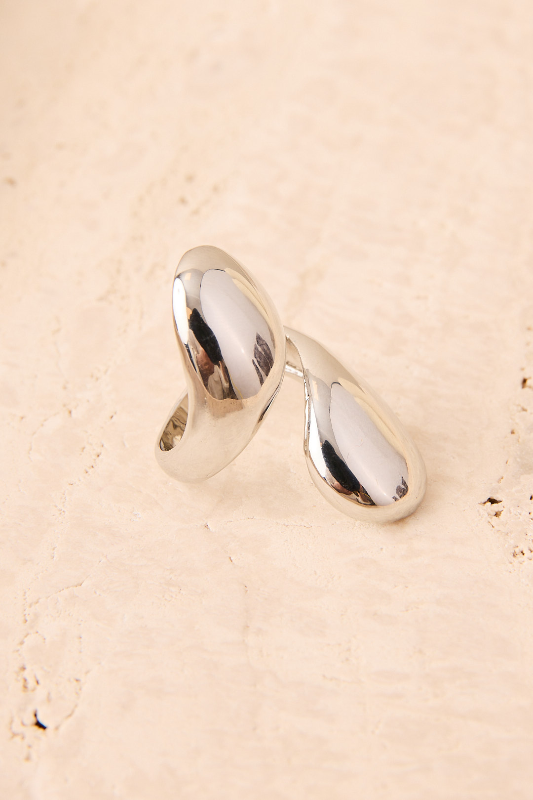 Anillo abierto de metal con acabado pulido en dorado y plateado. Su diseño envolvente con forma de gota aporta volumen y modernidad a cualquier conjunto.