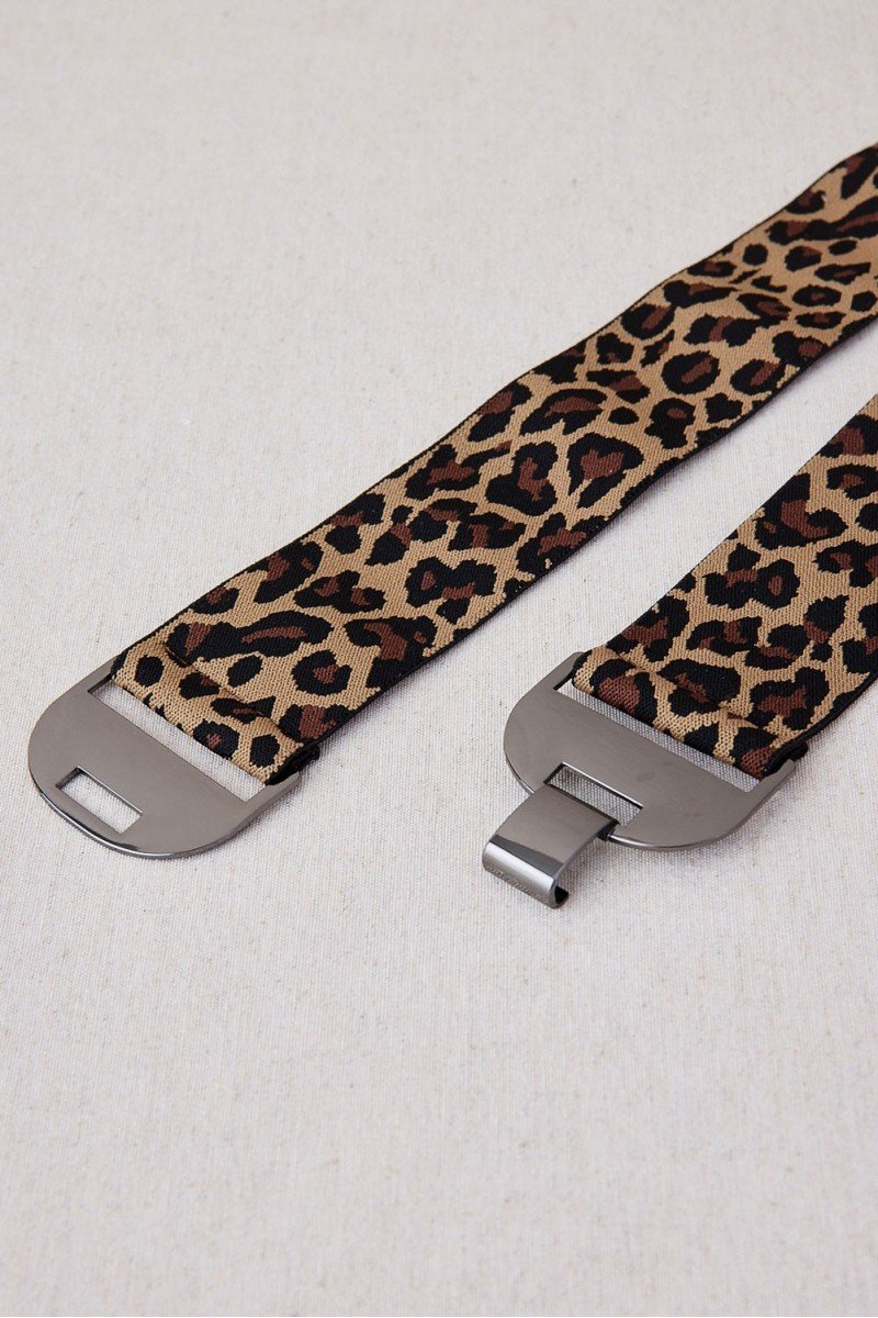 Un básico con personalidad. Cinta elástica con estampado de inspiración salvaje y cierre metálico minimalista. Ideal para elevar looks neutros o monocromáticos.