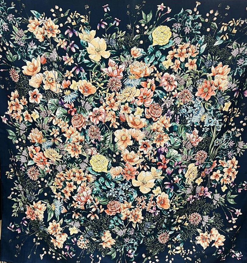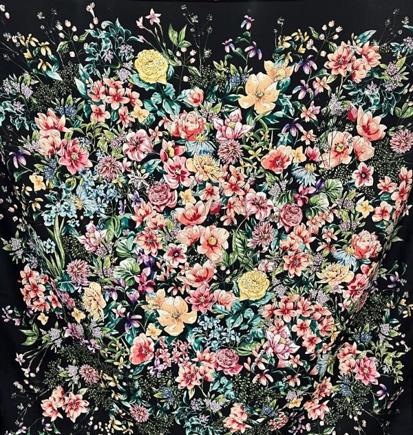 PAÑUELO CUADRADO 110X110 FLORES FONDO NEGRO