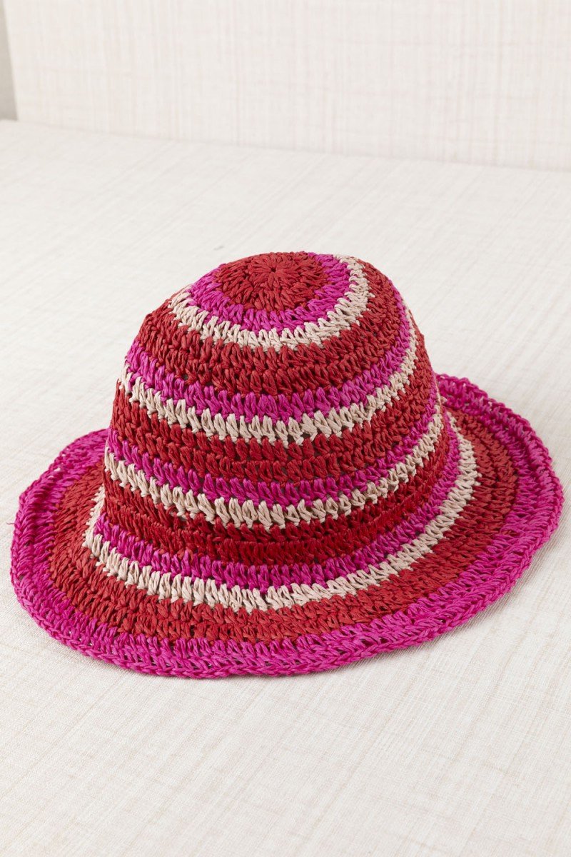 SOMBRERO RAFIA RAYAS FUCSIA.
