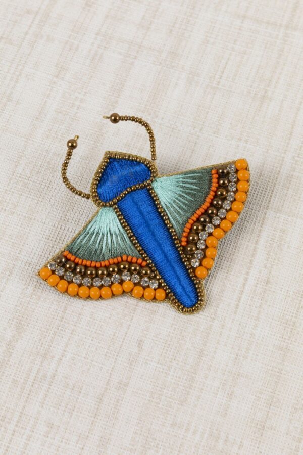 Este broche mariposa, bordado en hilos de diferentes tonos, aporta textura y personalidad a cualquier look. Ideal para transformar una chaqueta, un vestido o un bolso con un detalle creativo y lleno de carácter.