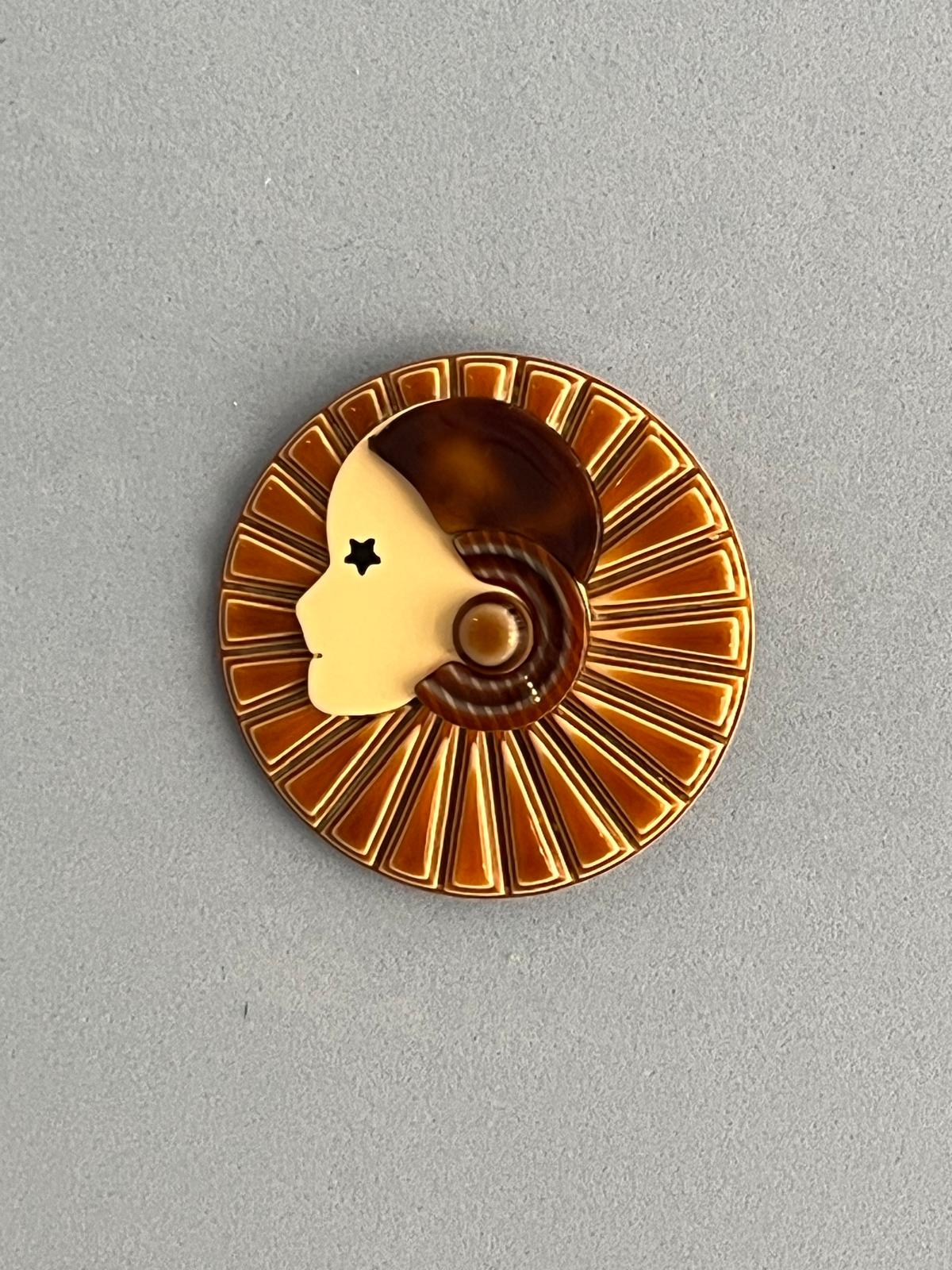 BROCHE LEA STEIN. COLLERETTE GRAVÉE MARRÓN