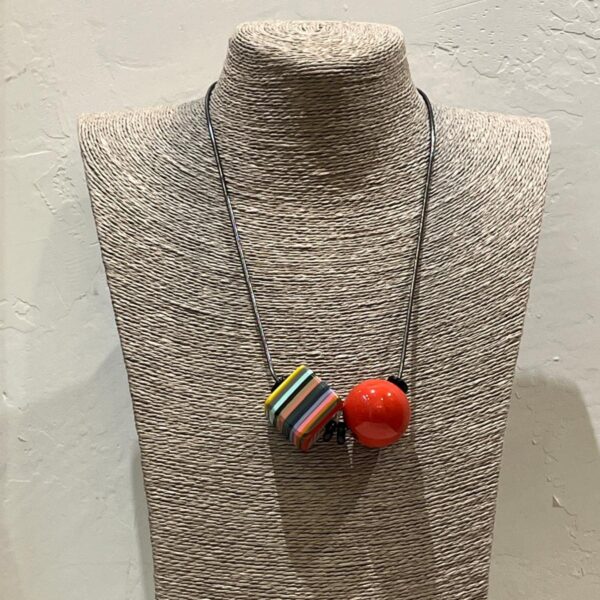 COLGANTE BOLA Y CUBO MULTICOLOR DE RESINA.