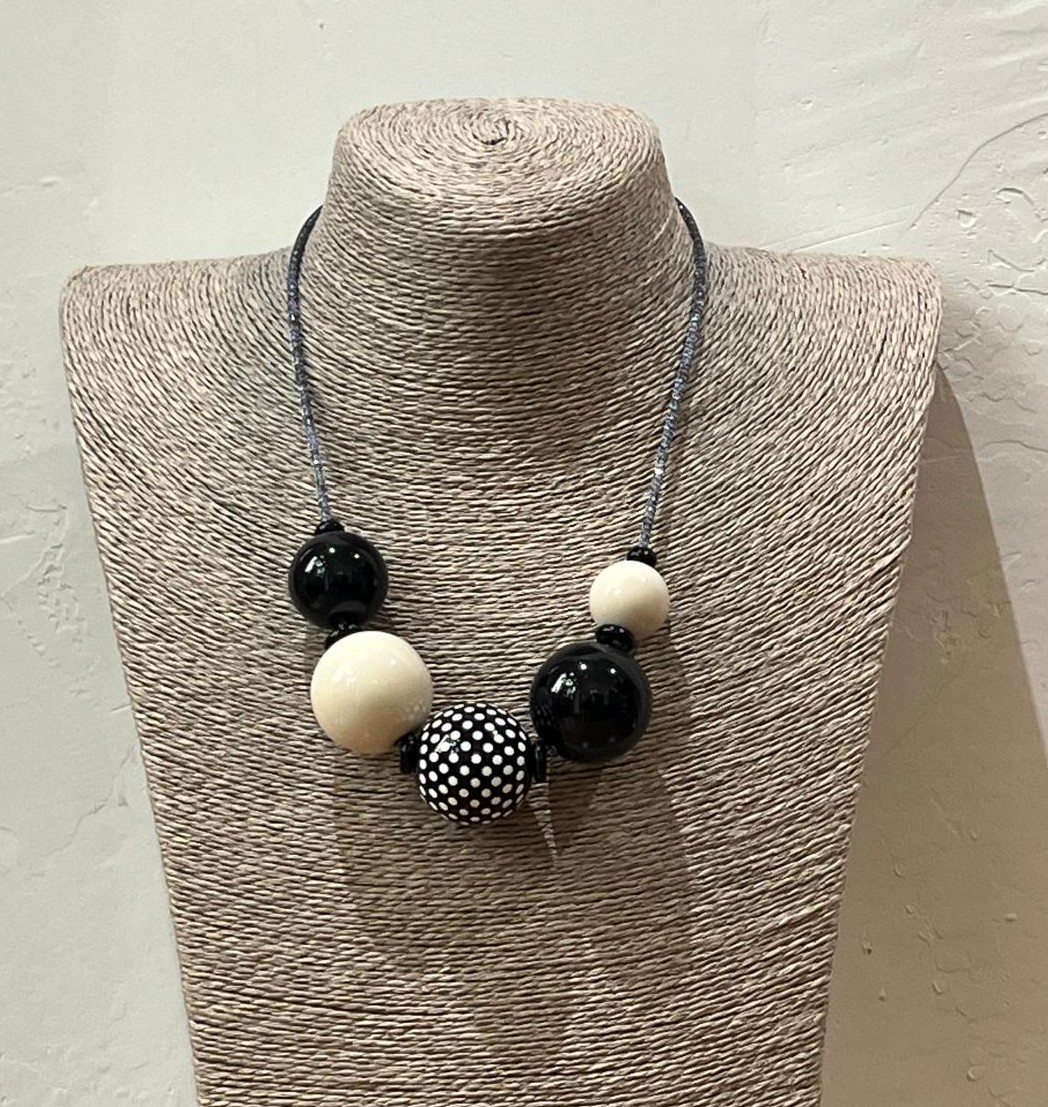 COLLAR SPHERA EN TONOS MARFIL Y NEGRO.