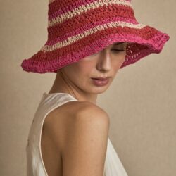 SOMBRERO RAFIA RAYAS FUCSIA